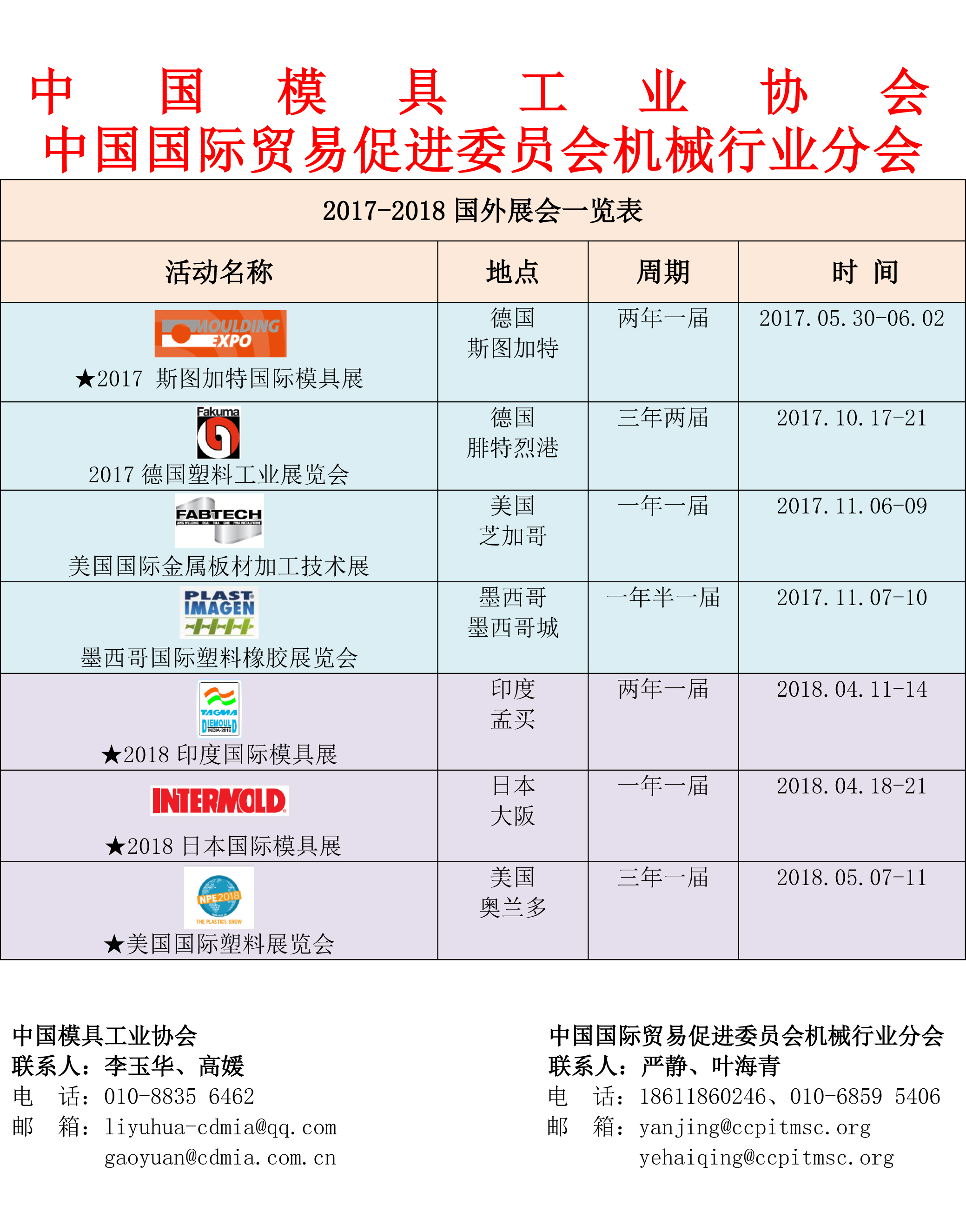 2017-2018國外展會(huì)一覽表