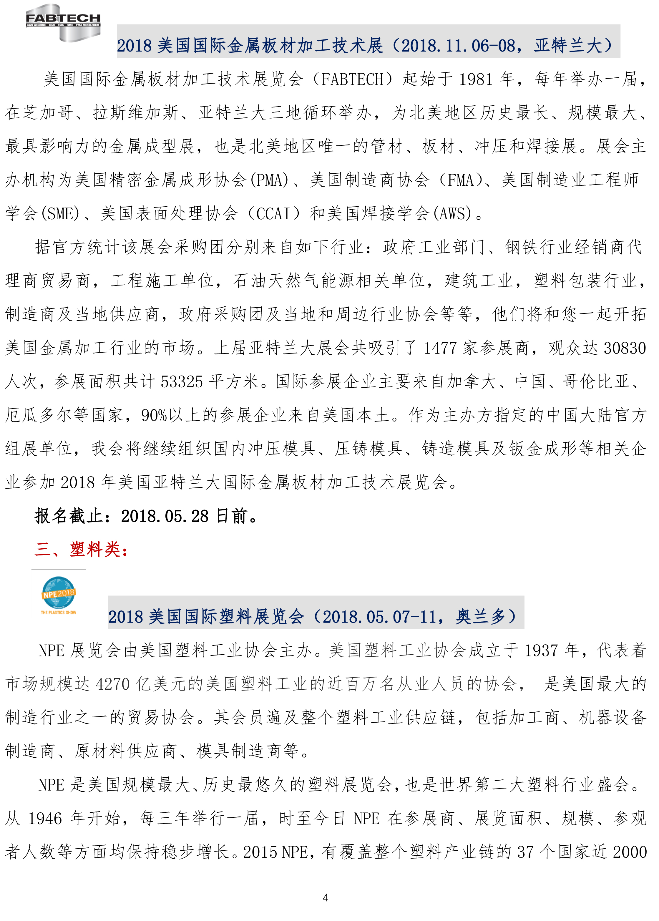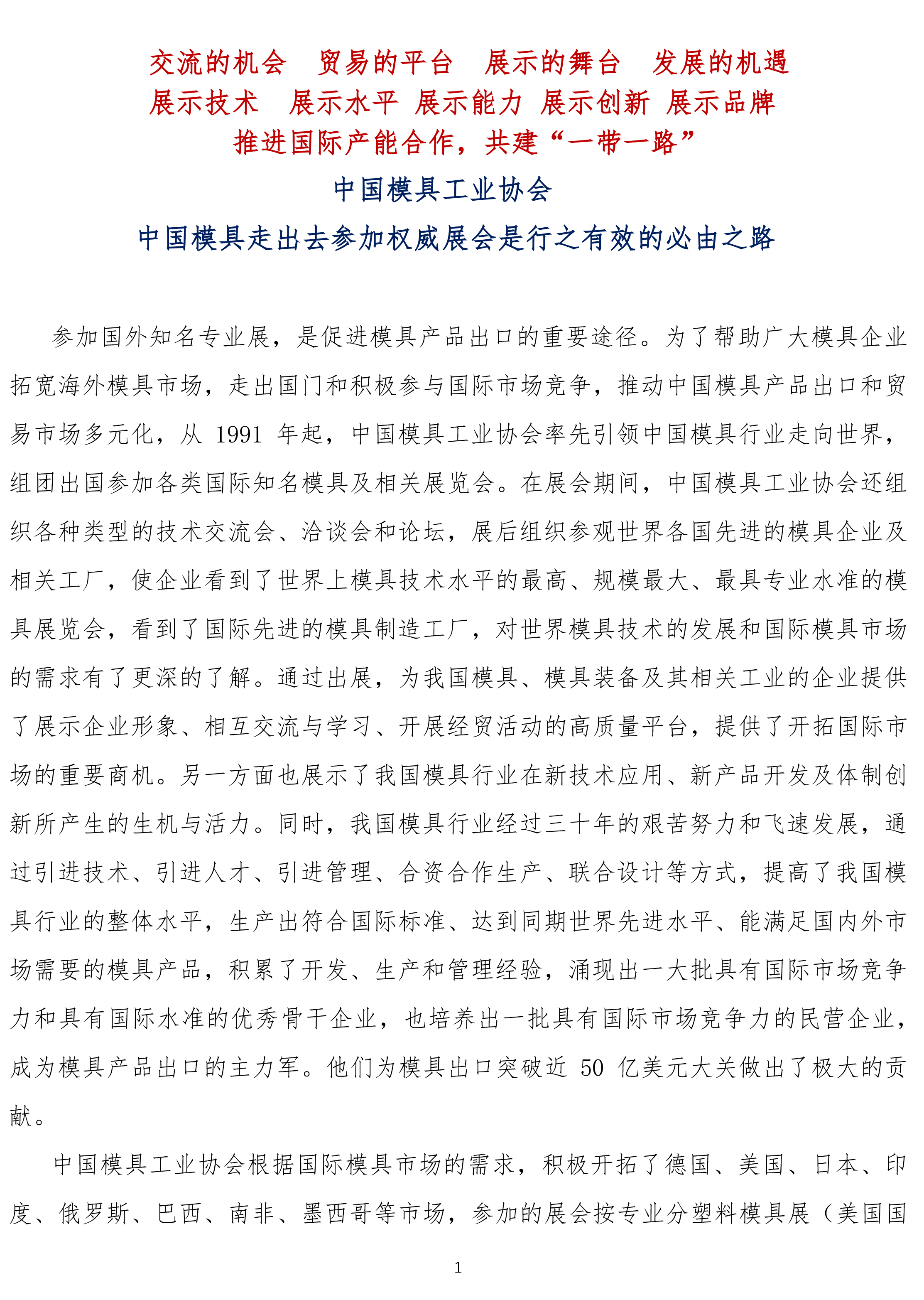 2018年中國模具工業協會組團參加國際著名模具及相關展覽會介紹