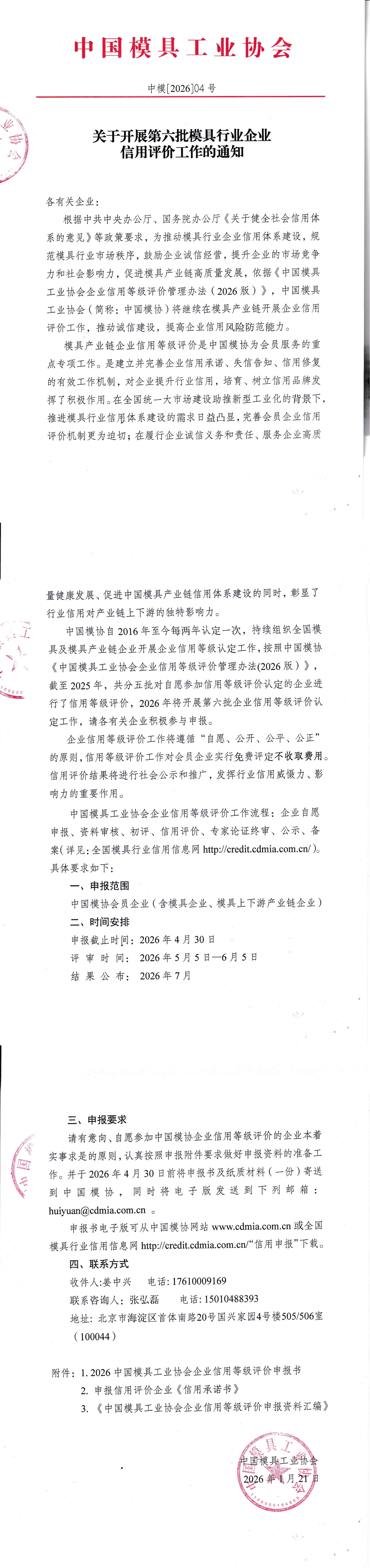 附件一:2026中國模具工業(yè)協(xié)會企業(yè)信用等級評價(jià)申報(bào)書.docx